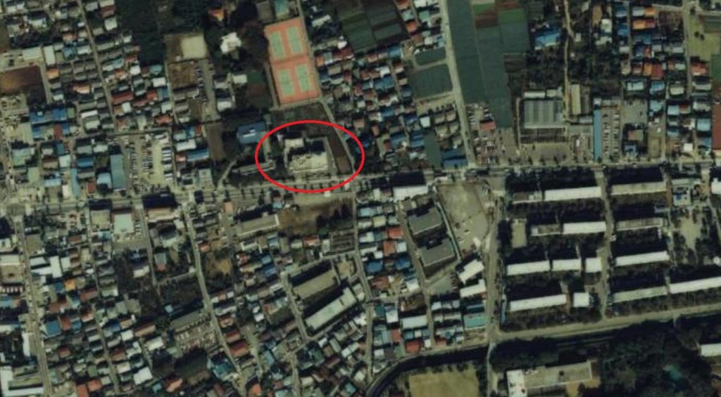 病院付近の航空写真と位置関係が合致しています。