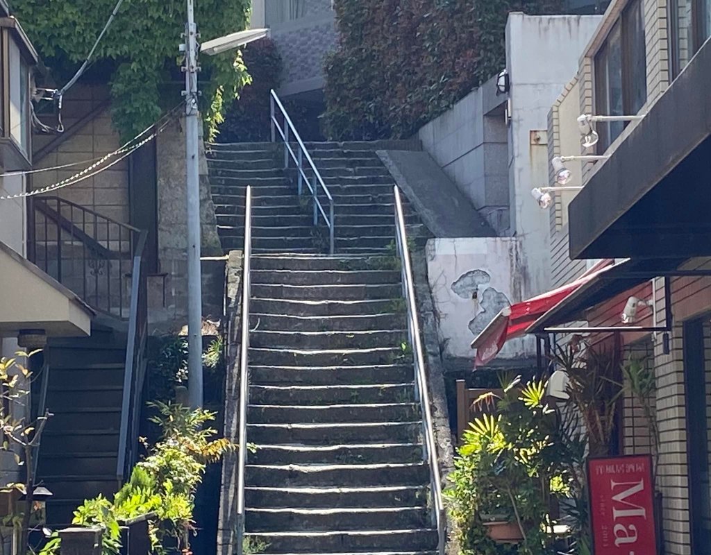 休日のジョギング途中でこの場を通りがかり、あの肉まん階段だと直感しました。