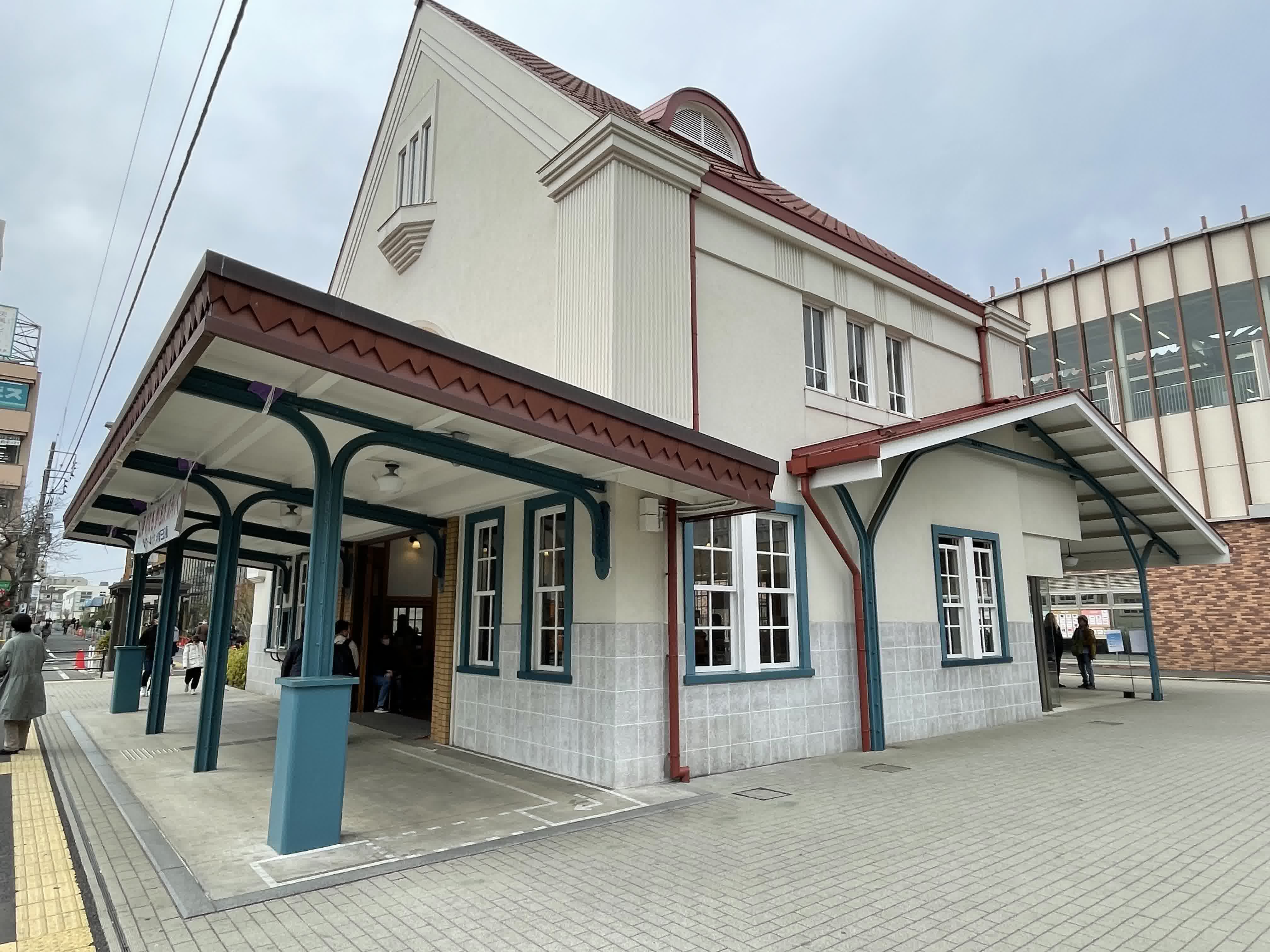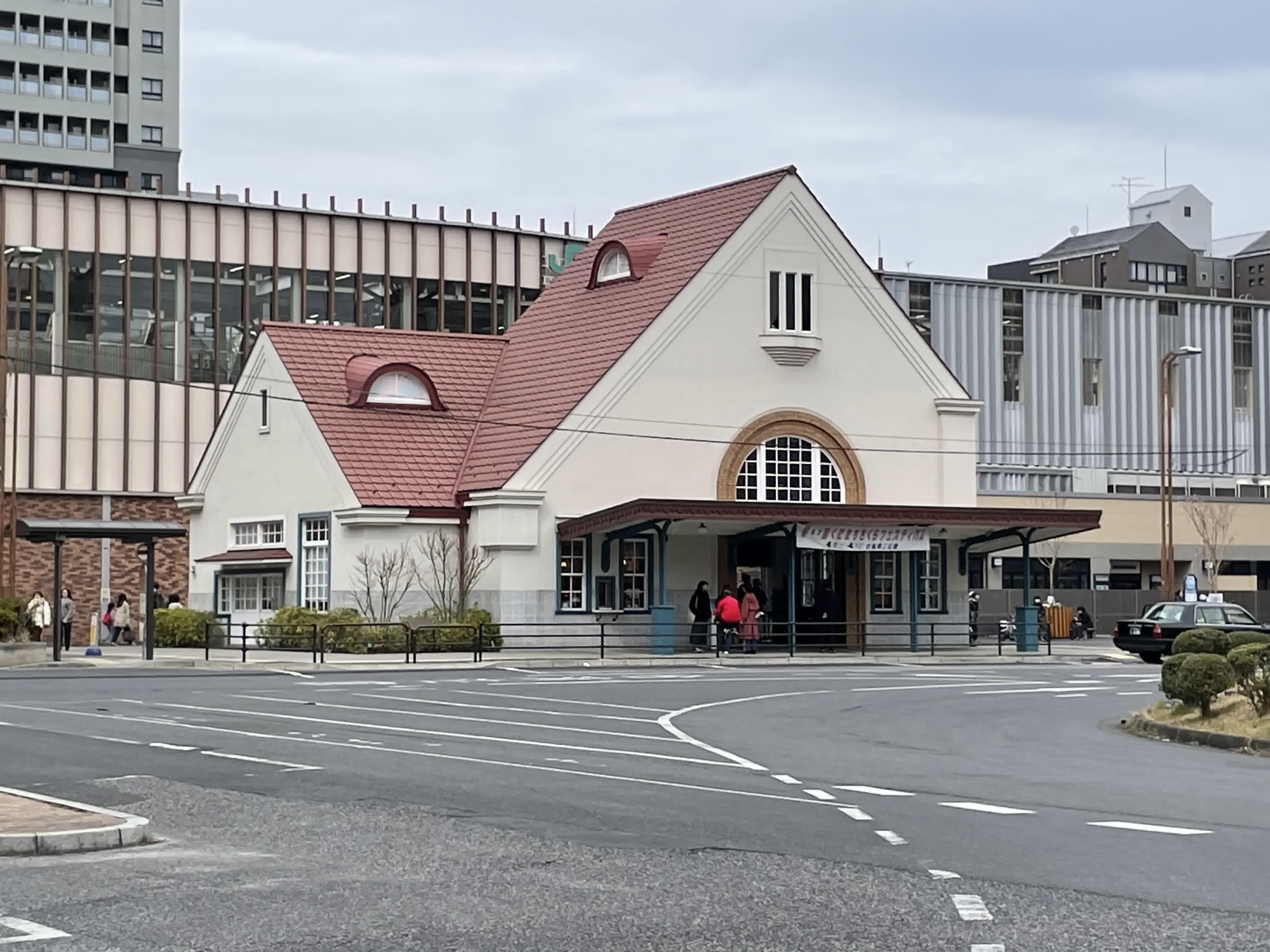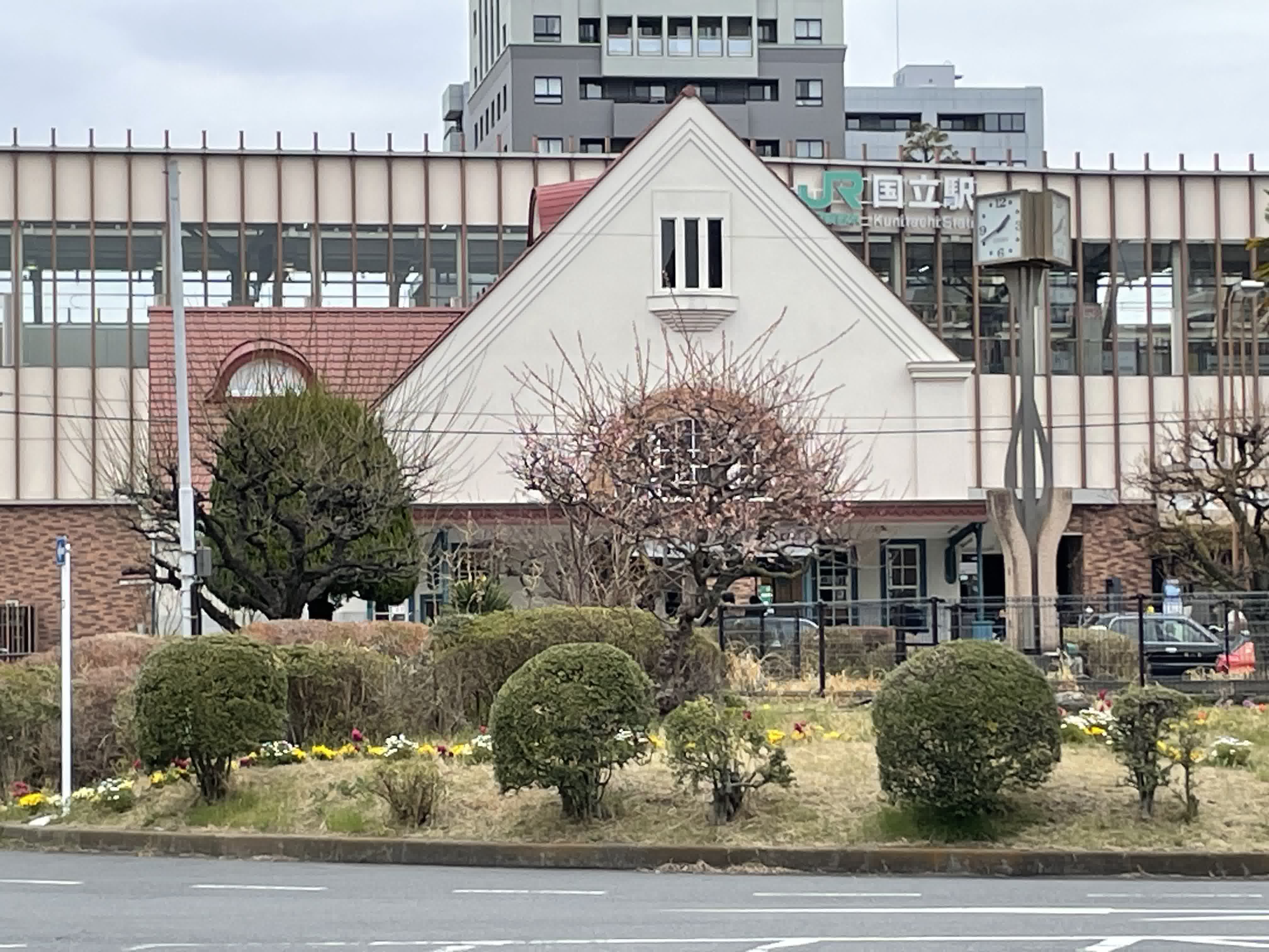 旧国立駅舎の外観ギャラリーです。赤い三角屋根に白い壁、欧米の大規模な駅舎にも用いられるロマネスク風の半円アーチ窓やドーマー窓が取り入れられているそうです。2024年3月24日撮影