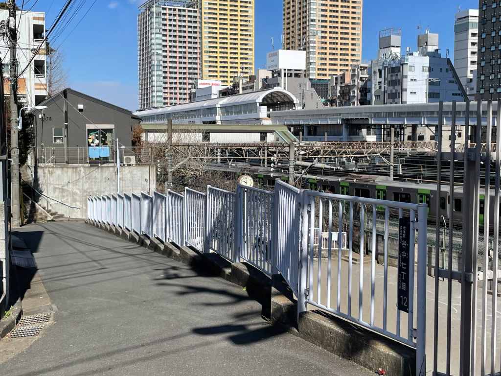 ドラマ映像で後ろに山手線が見えたので、現地でも山手線が来るのを待って撮影しました。