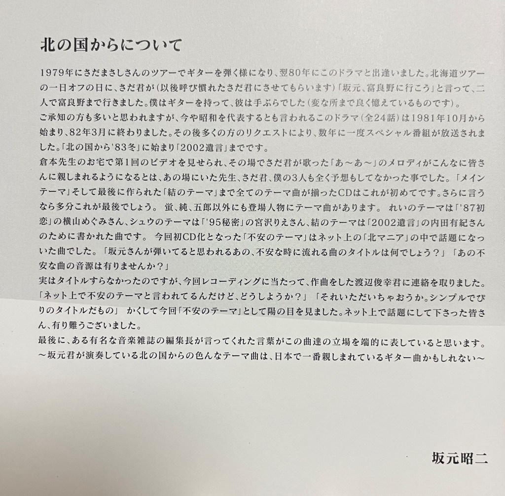北の国からベストセレクション~インストゥルメンタル~ギター坂元昭二(2022年発売)