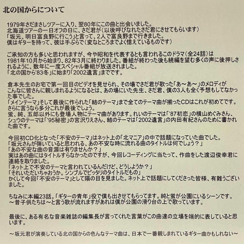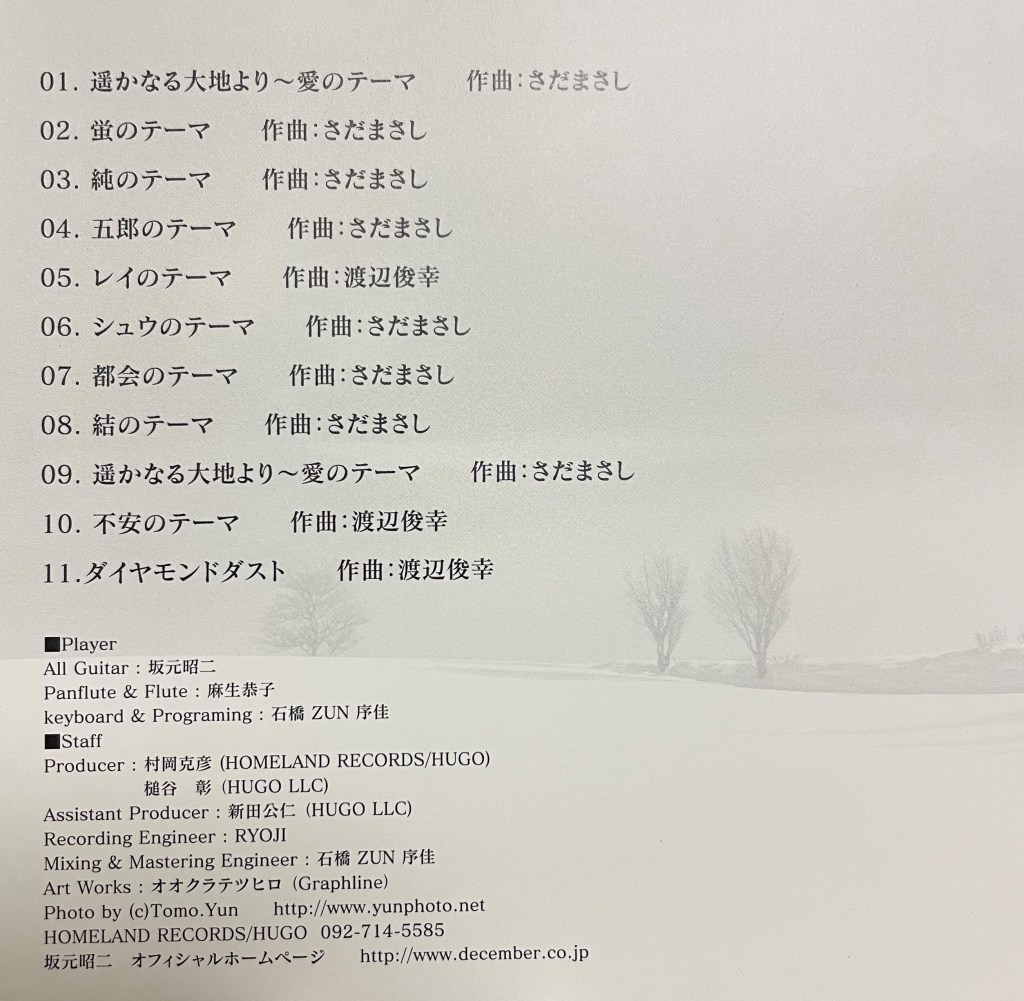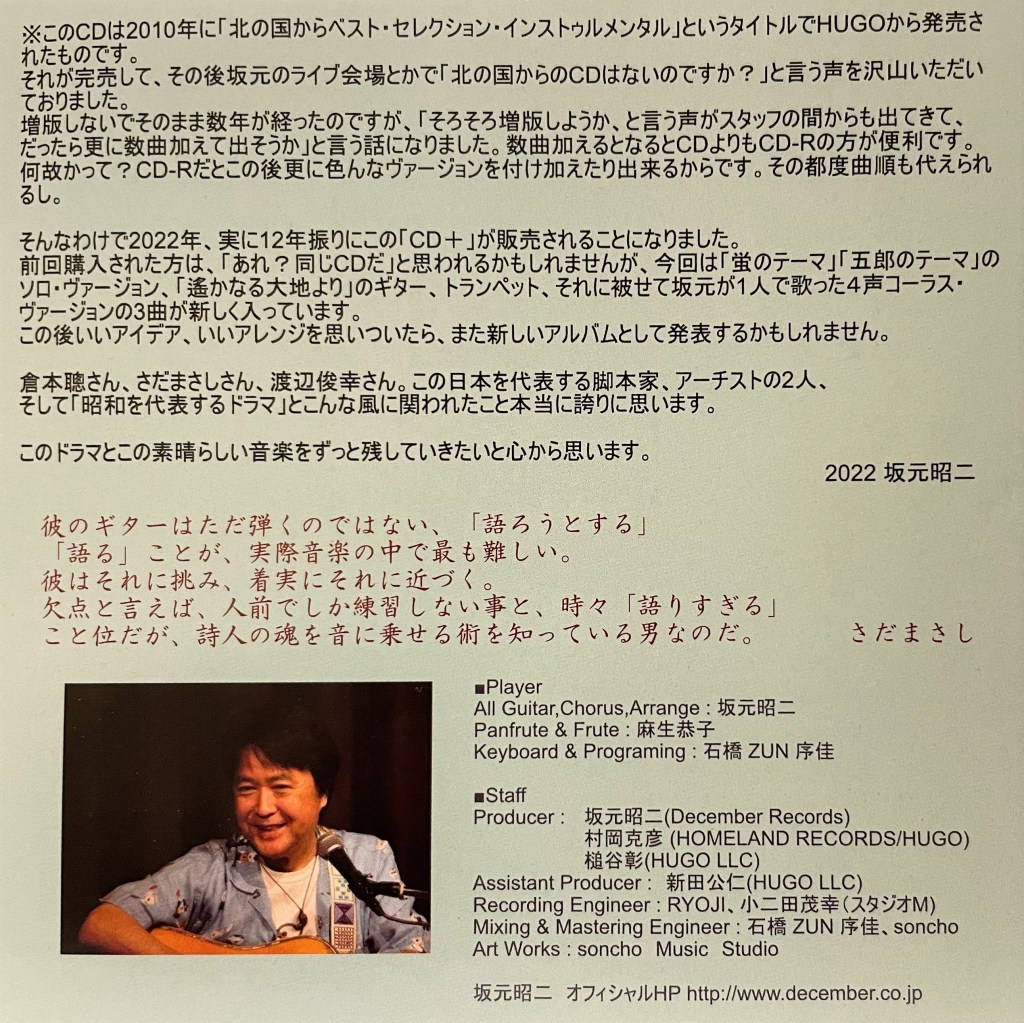 ※CD「北の国から ベストセレクション~インストゥルメンタル~ 坂元昭二 HMLD-1001」より