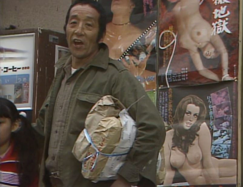 その後、純は森さんとこの新婚の嫁さんの白い足や町ですれ違う女性の胸が気になりはじめます。買い物の後、成人映画のポスターの前に立つ五郎を見て、語「(泣きそうに)そんなところに立たないでよォ!!」としゃがみこんでしまいます。