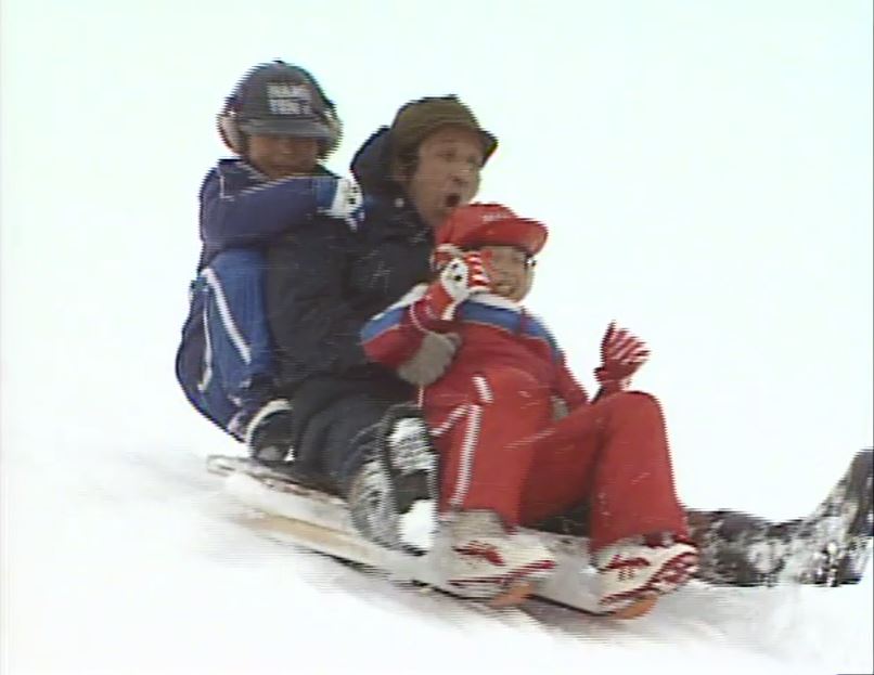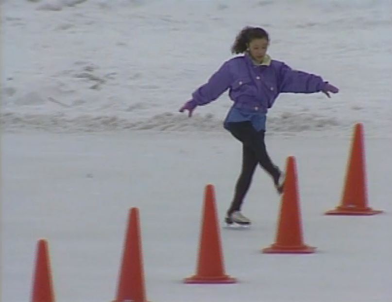 ・札幌で純とれいちゃんが歩く後ろでスケートの練習風景(’89帰郷)