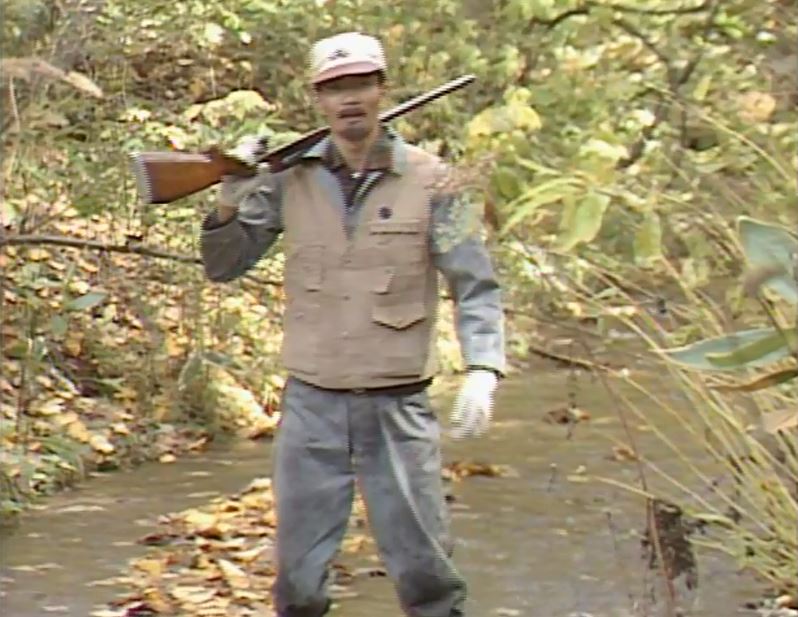 ・中川がライフルを持って沢を歩く(連続ドラマ第1回)